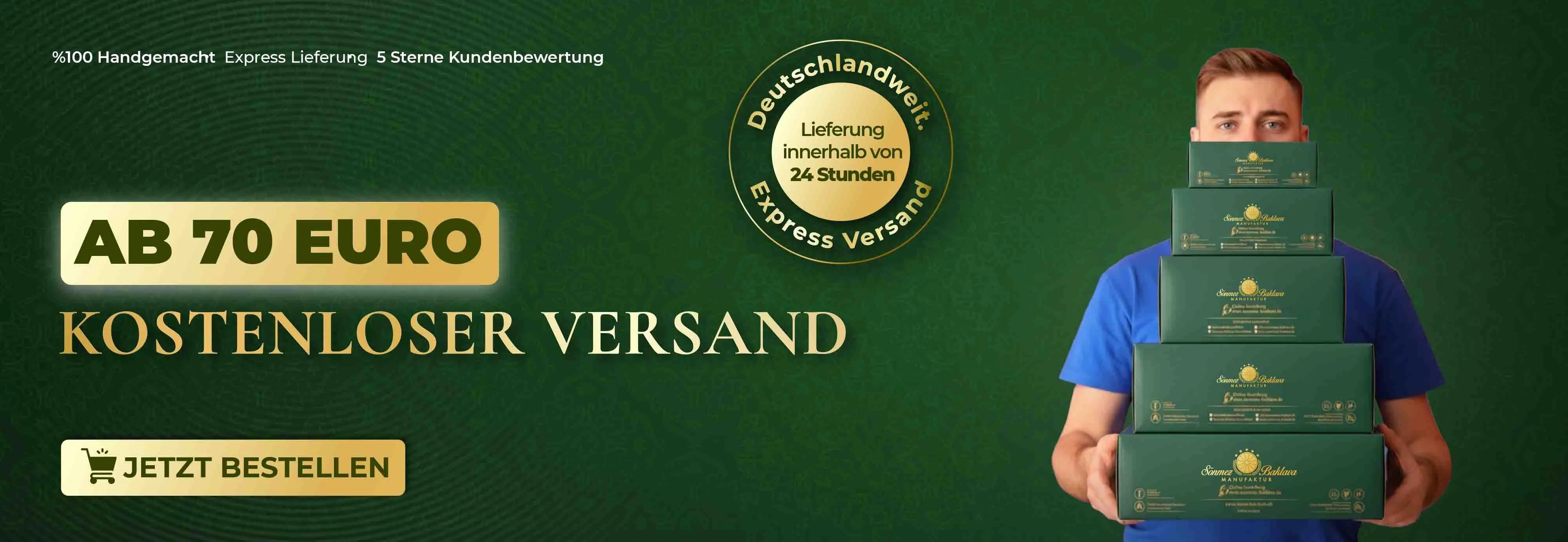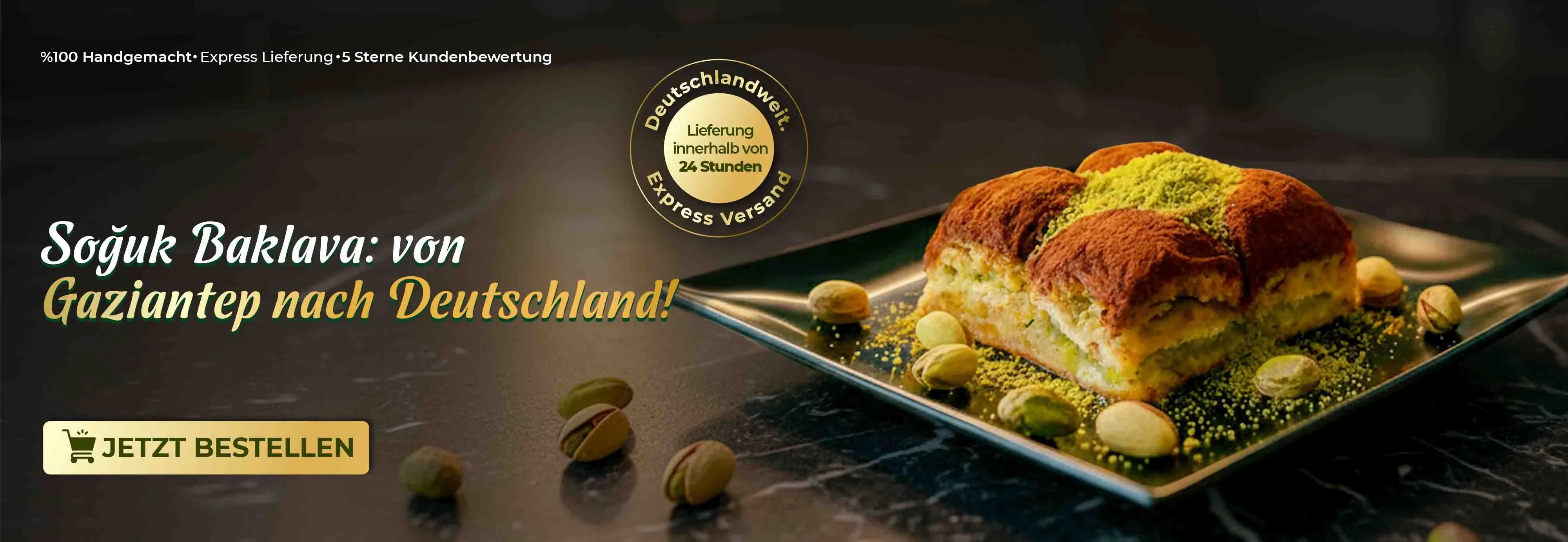 Baklava ist eines der wertvollsten Desserts der türkischen Kultur. Ob zu Feiertagen, Familienbesuchen oder besonderen Anlässen – jetzt kommt dieser legendäre Geschmack innerhalb von nur 24 Stunden direkt zu Ihnen nach Hause in Deutschland!