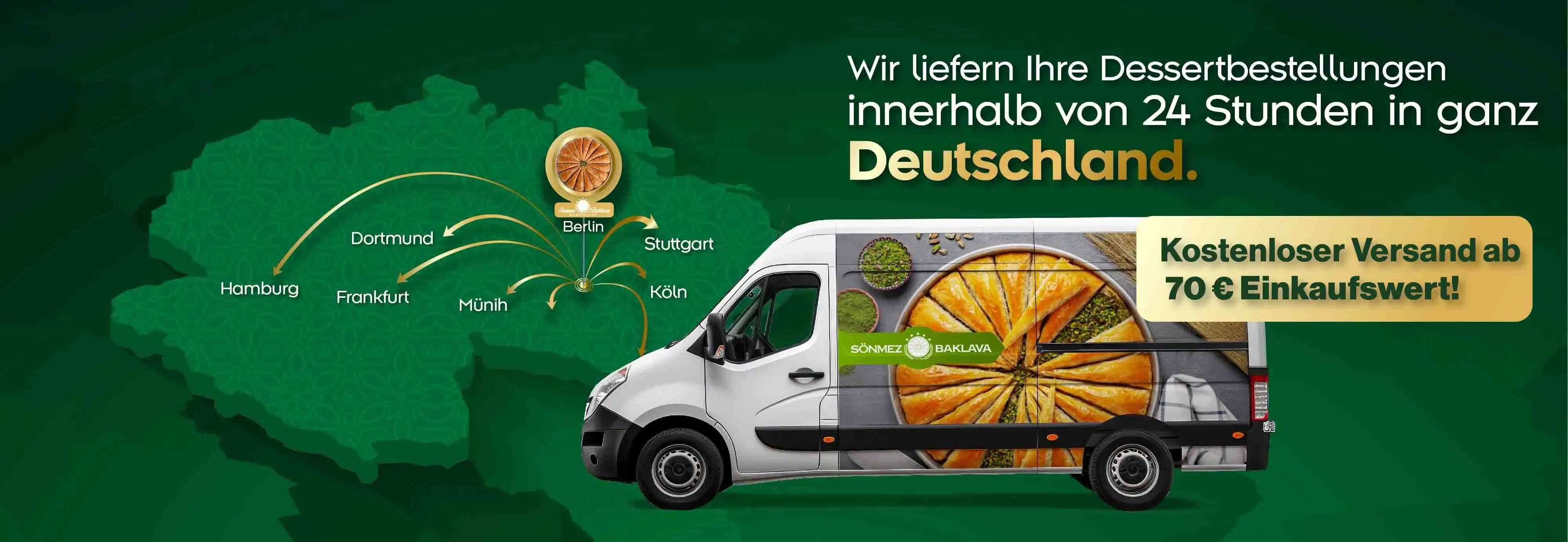 Denn Sönmez Baklava produziert täglich frisch in Deutschland und liefert in jede Stadt – schnell, zuverlässig und mit höchstem Qualitätsanspruch.